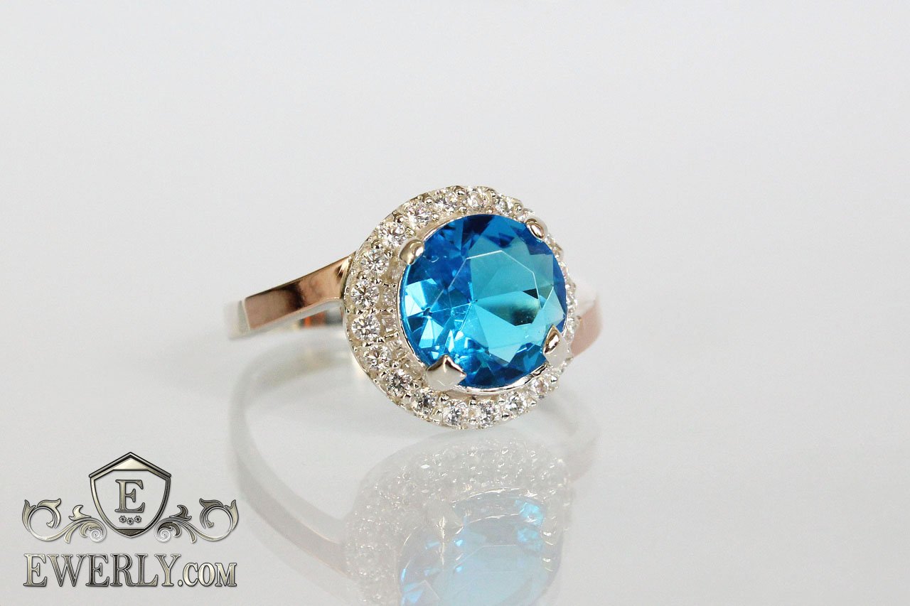 Кольцо из серебра с золотом и камнем (фианит голубого цвета)