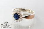 Женское серебряное кольцо (серебро 925 пробы) с золотом 375 пробы с синим фианитом.