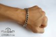 Полновесный браслет. На фото изображён Панцирный серебряный браслет с пластиной, данная пластина имеет длину 3 см и гравировку сверху "Miroslava".