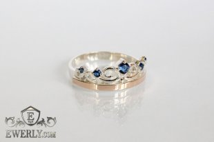 Женское кольцо из серебра 925 пробы с золотой пластиной 375 пробы с голубыми фианитами.